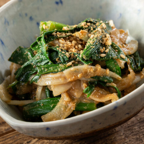 シャキシャキのにらと新玉葱 箸休めにどうぞ! ※提供有無と提供期間が店舗によって異なる場合がありますので、詳しくは店舗へご確認くださいませ。